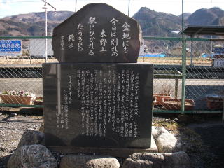 | 駅の隣にある宮沢賢治の歌碑。大正5年に地質調査研究のため長瀞を訪れたときの歌との説明がありました。 |