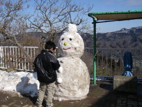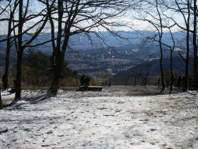 | 宝登山の山頂付近は薄く雪に覆われており、眼下に長瀞の町が見えました。 |