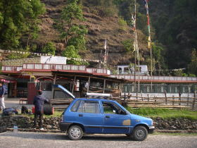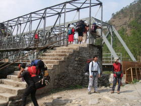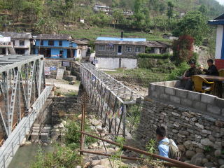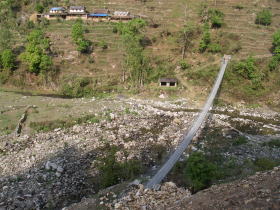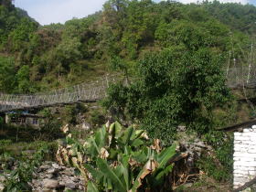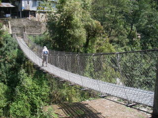 | 橋を渡ってしばらくすると Ghurnung のNamo Buddha Guest House に着き、その先の急な坂道を下ってこの大きな橋を渡りました。 |