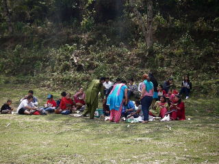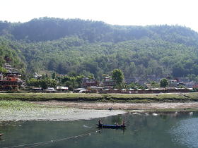 | 4月5日、羽田0時20分発のバンコク行で発ち、バンコクで6時間近くもカトマンズ行の便を待ちましたが時差の関係で同日の昼頃にはカトマンズに着きました。その日の午後と翌日はカトマンズの観光をし、7日はバスで7時間もかけてポカラに行き、Phewa Talという湖を見ました。8日の朝にポカラからタクシーでPhediに着き、いよいよトレッキングのスタートです。 |
