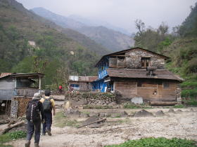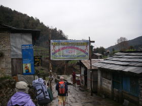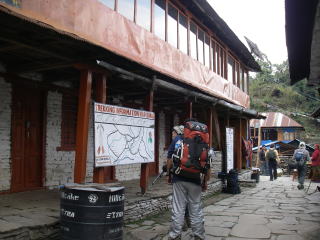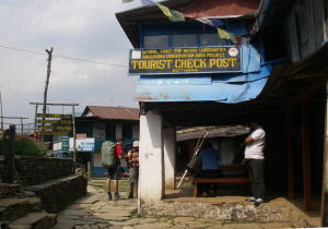 | PothanaのTIMS Tourist Check Post。ここでトレッキングの登録カードに捺印してもらう。登録はガイドがカトマンズで行い、登録料は10ドル。 |