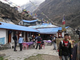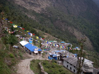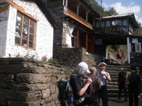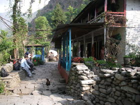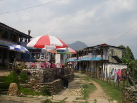 | Ghandruk にはロッジやレストランやおみやげ店がいくつもあり、たいへん賑わっていました。 |
