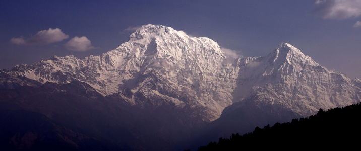 | Deurali Pass から見る Dhaulagiri(左)と Tukche。これ以外の山は雲に覆われて見えませんでした。 |