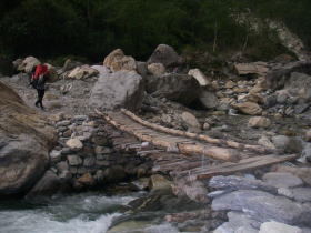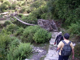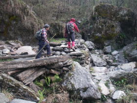 | 登ったあとまた沢まで下り、この橋を渡って Jhinudanda に向う。 |