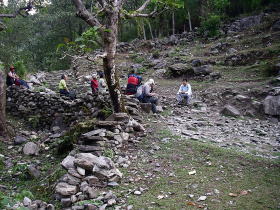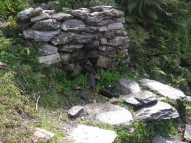 | このような石を積んで作った背負いやすい高さに重い荷物を置ける休憩場所がルートの各所にありました。 |