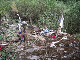 | 宗教的なお祭りのあとのようなもの。木製の人形とススキが飾ってありました。 |