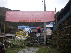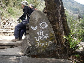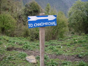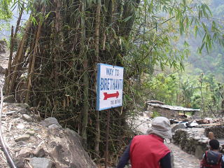 | Chhomrong へと温泉への道標を見ながら出発。 |