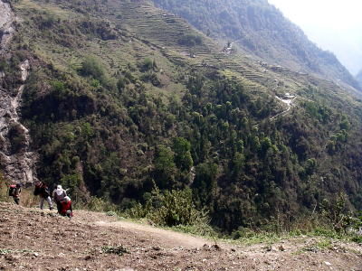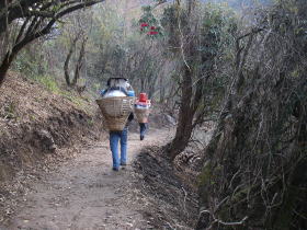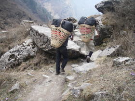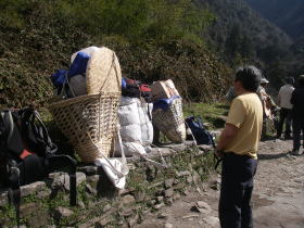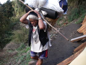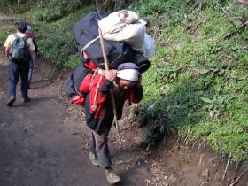 | ポーター。ロッジなどで必要なものはすべてこうした人達によって運ばれているそうです。 |