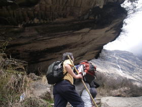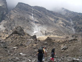 | Deurali に向う。昨日の雨の影響で滝ができていました。 |