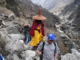 | お坊さんでしょうか、こんな姿の人も。足元はしっかりと登山靴を履いていました。 |