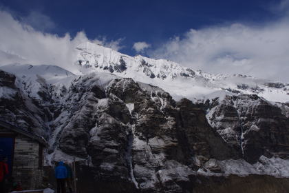 | 短い時間ですがM.B.C.方向の山をみることができましたがAnnapurna South, Annapurna Ⅰ, Singu Chuli の方は雲に覆われていました。 |
