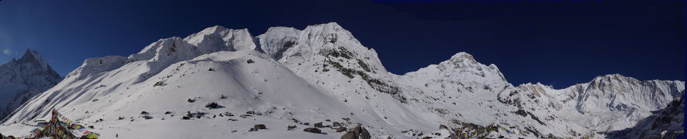 | Chhomrong の最高点付近から見た Annapurna の山 |