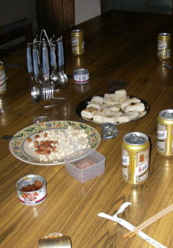 | 夕食後、食堂にはロッジの主人の家族や親戚の方が集まり楽しそうにおしゃべりをしていました。食堂は家族の居間であり、子供の寝室にもなっているようで、このように集まるのは正月だからというのではなく日常的な光景のようです。 私たちは8時過ぎには引き上げましたが、その後、太鼓の伴奏で歌が始まり、話し声のようすから食堂に集まっている人の数はふえているようでした。これは正月の行事なのかもしれません。 このためなかなか寝付けませんでした。 |