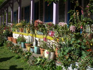 | 鉢植えの花で飾られた Sinuwa のロッジ |