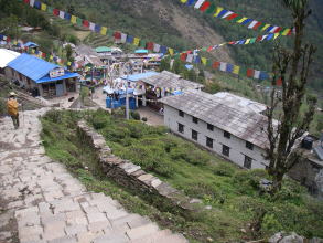 | Chhomrong のロッジが建ち並ぶ高いところはまだまだ先。 |
