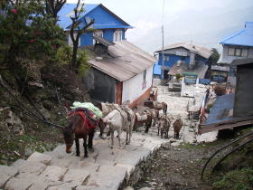 | Ghorepani はロッジがたくさんあり、日本で言えば旅館街にあたるような町です。 |