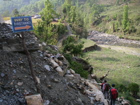| 広い幅の道を30分ほど歩くと Birethanti への分岐があり、そこを辿りました。 |