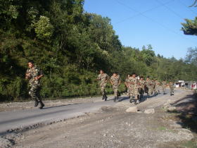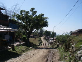 | Pokhara と Nayapul を結ぶ道路に出ました。Lumle という町で、近くにホテルがありましたが改装工事中で宿泊できませんでした。 |