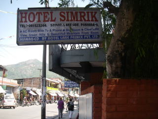 | 宿泊した Hotel Simrik。遠くの山は Sarangkot の展望台がある山です。 |