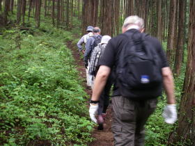 | 元郷バス停の登山口。ここでバスを降りたのは私達だけ。 |