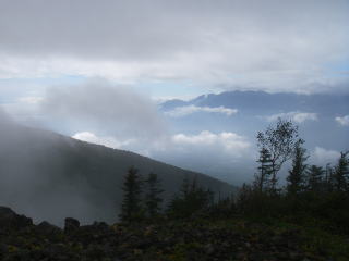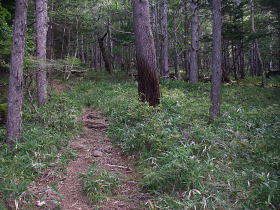 | 朝、諏訪湖付近を走っているときに雨が降り、一時は登るのを諦めようかと思ったのですが雨が上がり登ることが出来ました。西岳でも少し雨が降ったらしく草が少し濡れていました。歳のせいか、もし諦めていれば登る機会は二度と来ないかもしれないと思うことが多くなりました。 でも雨の中、無理をして登る元気もありません。 |