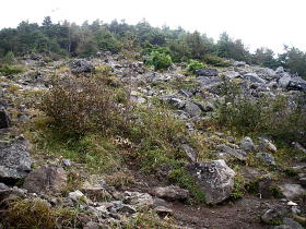 | 山頂が近づくとこのようなガレ場があり、単調な道から解放される。 |