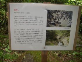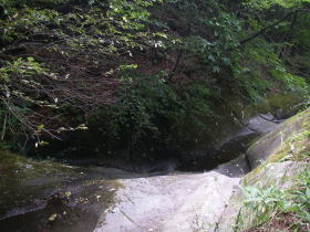| 盃流し。近く説明がありました。谷の岩が水流で削られ溝のようになったもの。そのような溝を薬研に見立てて、薬研堀と名付けられているのを日光で見たことがあります。 |