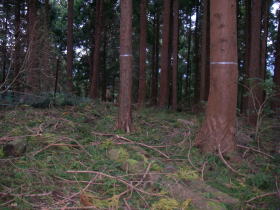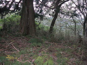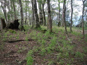 | 戸沢ノ頭から大杉山に向かうルートは幅広の平らな稜線で、枝打ちされた杉の葉が積もっている状態。 |