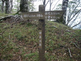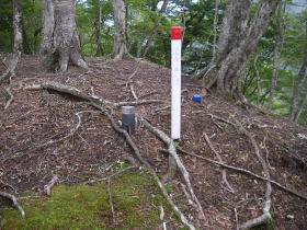 | ヤブ沢ノ頭から20分ほどの所にあったヤブ沢ノ頭の道標。 |