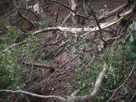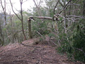 | P845付近の倒木。葉は活き活きとしており、先日の台風の風によるものらしい。 |