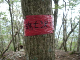 | P956から10分ほど歩いたところにある小ピーク。ここには弥七沢ノ頭と書いてありました。ここから箒沢に下るルートがあるようです。 |