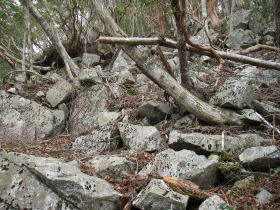 | 木の根や立木、ヤブなどを頼りに進む急なアップダウン、痩せ尾根、岩場などがありました。 |