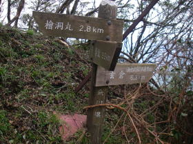 | 西丹沢自然教室分岐の道標。檜洞丸に行くのをやめ、西丹沢自然教室に向う。 |