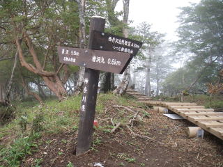 | 檜洞丸ではお馴染みのしっかりした作りの木製の階段が現れた後、テシロノ頭に到着。 |