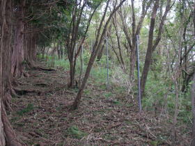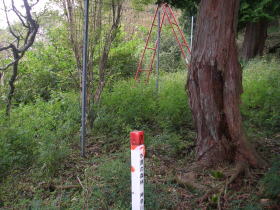 | 更に進み、伊勢沢ノ頭が近くなると稜線の両側に鹿柵が現れました。この辺りには杭や赤布がありました。 |