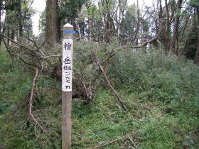 | ジグザグの道がなくなってからは踏み跡らしきものが見えない尾根を直登し、傾斜が緩くなった辺りにこの協定林の看板がありました。 |