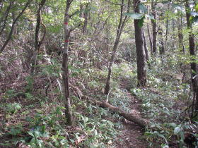 | P1228を越えると、富士山が見えることを意識してるせいでしょうか、稜線の道志村側が開けている所が多くなりました。あいにく富士山は見えませんでしたが、日差しが地面に達するせいでしょうか、この時期でも花が沢山咲いていました。 |