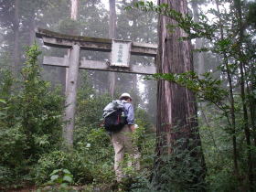 | 瀬音の湯への分岐近くにある高明神社。鳥居は大きいが社は小さい。 |