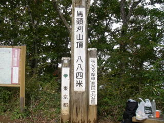 | 高明山。周囲を樹木が覆っているので、ここでは休憩せず馬頭刈山に向う。 |