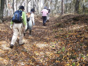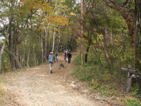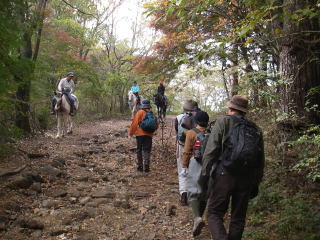 | 自然歩道の道は広く、幅広の林道のようです。馬が下りてきました。 |