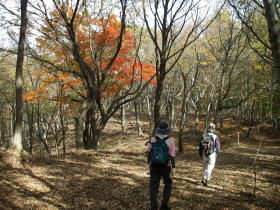 | 河口湖駅からタクシーで紅葉台レストラン駐車場に着き歩き出す。歩き出すとすぐにすぐに東海自然歩道のへの分岐があり、自然歩道に入りました。 |