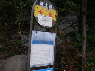 | 大嵐バス停。時刻表によると1時間待ちなのでタクシーを呼び河口湖駅に向かいました。 |