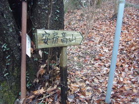 | 稜線に出ると、安房高山と書いた道標がありました。これで一安心。 |