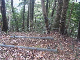 | 安房高山に向かって進むとトラロープで塞いでいるような所に出ました。ここまでが清和県民の森の遊歩道のようです。 |