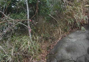 | トラロープの先には踏み跡の不明瞭な所やこのようなトラロープの張ってある所もありました。 |