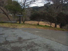 | はなその広場の駐車スペース。ここに車を止め花嫁街道入口に向かう。 |