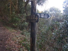 | 経文石手前の道標。烏場山というのはこの方向に道があるのではなく、見えるということ。 |