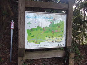 | 舗装道路終点にある御殿山遊歩道の案内。 |
