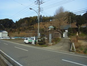 | 駐車場前の御殿山入口の道標。ここからしばらくは車道歩きです。 |