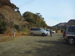 | 天神社に向かって右に登山者用の駐車場があります。平日にもかかわらず何台も止まっていました。 |